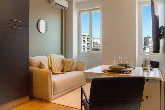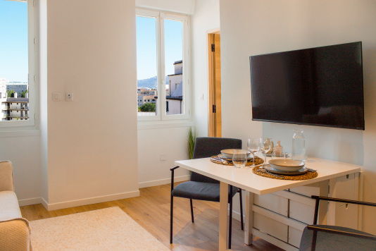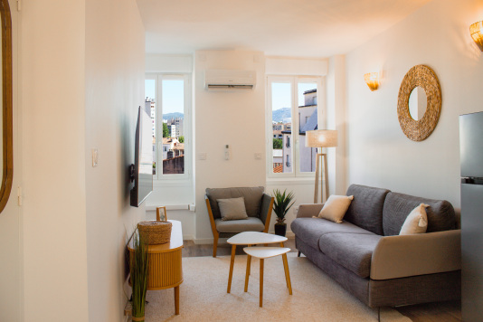 Situé au 4ᵉ étage d’un immeuble sans ascenseur, cet appartement T2 entièrement climatisé (chambre + séjour) offre un confort optimal. Lumineux, doté d’un double vitrage et parfaitement insonorisé, il est complètement rénové avec des finitions soignées. Sa literie haut-de-gamme (standard 4 étoiles) garantit des nuits reposantes. La cuisine est parfaitement…