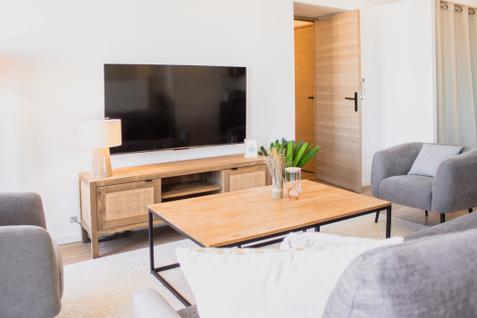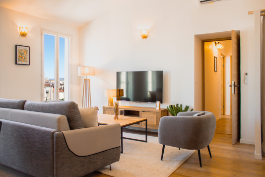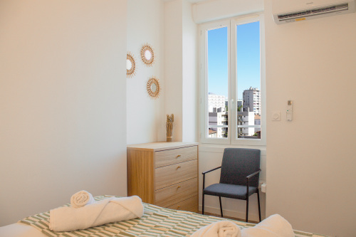 Situé au 4ᵉ étage d’un immeuble sans ascenseur, ce grand T3 climatisé (chambres + séjour) combine espace, confort et élégance. Inondé de lumière, insonorisé et équipé de double vitrage, il a été entièrement rénové avec des prestations haut-de-gamme. La literie 4 étoiles assure un sommeil réparateur, tandis que la cuisine…